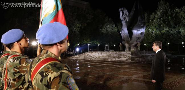 „Съединението на Княжество България с Източна Румелия е първият самостоятелен държавнически акт, с който народът ни доказа преди 129 години, че младото българско княжество заслужава своето достойно място на картата на света“, заяви президентът. Държавният глава отбеляза и „блестящите битки на бойното поле и важните победи на дипломатическата маса“, които са белязали обединението на разпокъсаните от Берлинския договор земи, населявани с българи. „Цената, която плати младото княжество, за да защити постигнатото, бяха свидните жертви, паднали във войната на генералите срещу капитаните. Нека днес сведем глава и пред техния подвиг“, заяви в словото си президентът.