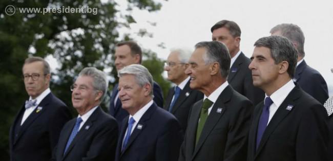 Българският държавен глава подчерта, че тази среща на европейските президенти се провежда в решителен за ЕС момент. Обединена Европа има нужда от идеи, които да я придвижат напред. „ЕС е не само в криза на своята идентичност, но и на своите ценности. Тогава, когато затваряме границите си за хора, търсещи убежище от най-тежката война от последните години, когато си прехвърляме топката, неспазвайки утвърдените правила и в редица държави членки бежанците дори не се регистрират, за да може всеки да отиграе ситуацията, така както му е изгодно, трябва да си даваме сметка, че е необходимо ЕС да вземе мерки“, категоричен беше президентът Плевнелиев.