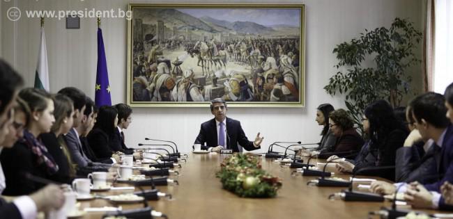 „По никакъв начин не мога да предопределям решението на правителството, което то трябва да вземе много скоро“, заяви държавният глава, помолен от студентите да коментира вероятността България да излъчи генерален секретар на Организацията на обединените нации.