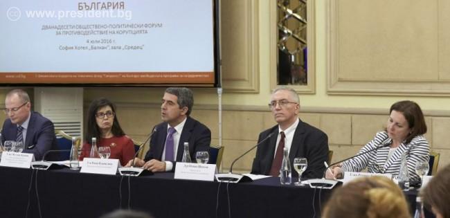 "Корупцията я имa във всички държави от Европейския съюз. България не прави изключение и е измежду страните на ЕС, които усещат силно негативния ефект на корупцията заради тежкото наследство от комунизма", заяви президентът и добави, че за решаването на проблема е необходима коренна реформа на всички публични институции и еманципиране от олигархичните и сенчести интереси.