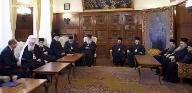 В знак на почит държавният глава поднесе на Негово Светейшество издание на „История славянобългарска“ и отправи благопожеланията си за здраве, за мирни и светли дни на Българския патриарх и на митрополитите от Светия синод на Българската православна църква.