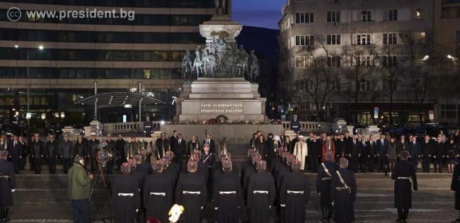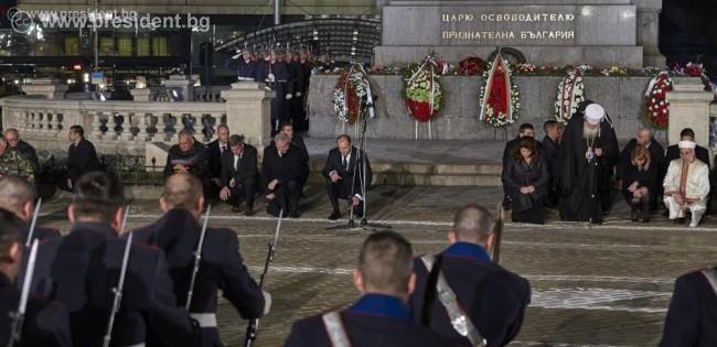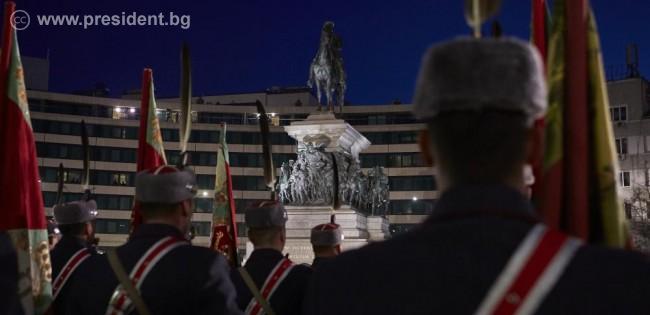 Много събития предхождат възкресението на България, но едно ги свърза – паметта, посочи президентът и припомни, че паметта за вярата ражда Българския Великден и църковната ни независимост. „Паметта за историята вдъхновява монаха Паисий да буди българите след векове на униние. Паметта за езика и буквите дават на възрожденците силата на словото, с което бунят своите съвременници. Синилата от бича и следите от теглото не са Вазов мит, но дори пет века османско иго не изтриват спомена за това, кои сме“, каза държавният глава.
