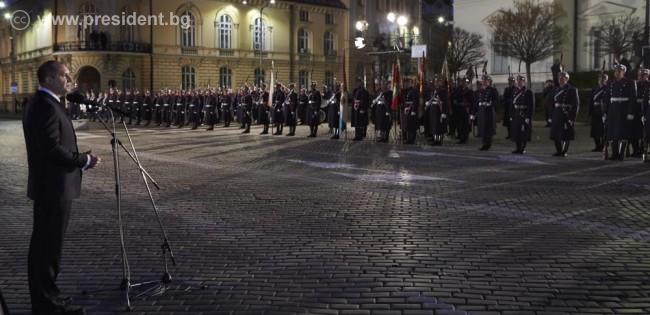 „Всяка епоха предлага своя, заинтересована версия на историята, но само оригиналът на възрожденците е съзидан с дела и написан с кръв. Него не бива да забравяме, защото той е фундаментът на днешна България“. Това заяви държавният глава Румен Радев в словото си по време на тържествената заря-проверка по повод Националния празник на България - Трети март. Президентът и върховен главнокомандващ Въоръжените сили прие почетния строй на представителните части на Българската армия на площад „Народно събрание“.