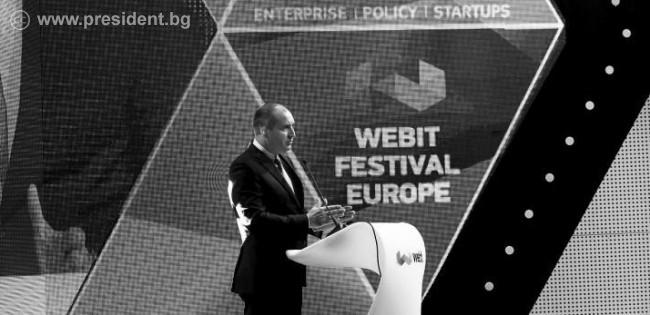 2017-04-25 16:17:00Развитието на информационните технологии и цифровото предприемачество носи последици в социален, политически, бизнес и философски характер и за това е важно как ще бъдат използвани. Това заяви президентът Румен Радев при откриването в сграда „Джон Атанасов“ на “София Тех Парк“ на ежегодния форум Webit.Festival за технологии, иновации и инвестиции, който се провежда под негов патронаж. Държавният глава подчерта, че именно младите хора следва да бъдат подготвени за новите професии, в които водеща ще е машината.
