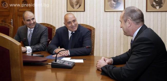 „Длъжни сме да работим заедно“, заяви лидерът на ГЕРБ Бойко Борисов и добави, че голяма част от стабилността на бъдещото правителство зависи от добрия диалог с президентската институция. Румен Радев и Бойко Борисов бяха категорични, че има теми, по които постигането на съгласие е задължително и ще защити в най-голяма степен българския интерес.