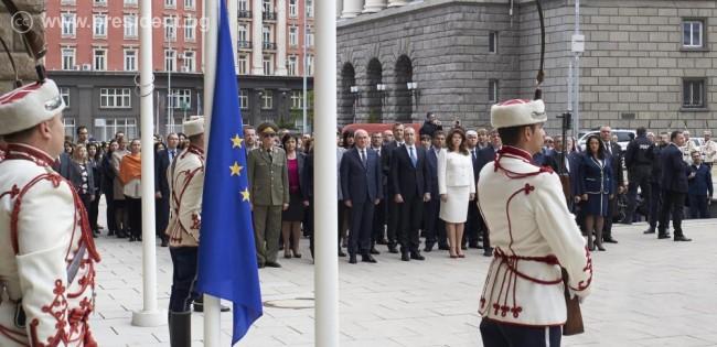 По-късно по повод Деня на Европа пред сградата на Президентската институция на тържествена церемония беше издигнато знамето на ЕС. Церемонията се състоя в присъствието на държавния глава Румен Радев, вицепрезидента Илияна Йотова, председателя на Народното събрание Димитър Главчев, парламентаристи и представители на изпълнителната власт.