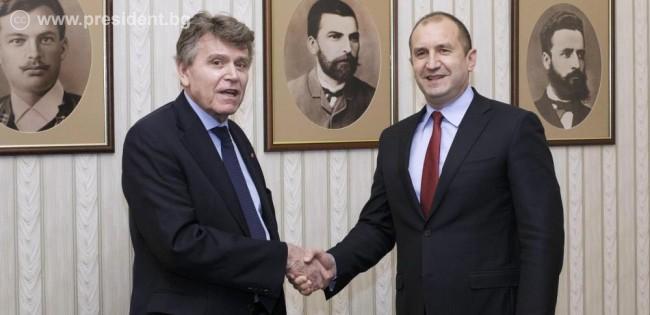 Държавният глава Румен Радев проведе днес среща на „Дондуков“ 2 с Тиери дьо Монбриал, основател и генерален директор на Френския институт за международни отношения.