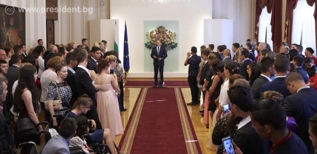 В тържеството, с което държавният глава посрещна абитуриентите на „Дондуков“ 2, се включиха някои от младежите и техните ръководители, ментори и наставници. Исус Христов от София благодари на президента за подкрепата и го изненада с погача, която е приготвил сам. Милко Георгиев от Велинград му даде мъжката си дума, че ще оправдае доверието му и ще бъде приет да учи в Лесотехническия университет в София. Вики Калинкова от Бургас сподели с него мечтата си един ден да има своя танцова школа и го покани на танц.