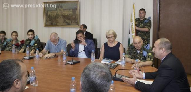 Гостите запознаха държавния глава със своята дейност и изразиха надежда, че държавните институции ще направят необходимото за популяризирането на военното обучение и патриотичното възпитание. „В процеса на работа с младите хора ние залагаме на приложната подготовка и придобиване на практически умения“, посочи по време на разговора о.р. подполк. Михаил Неделев – командир на СУБ „Васил Левски“.