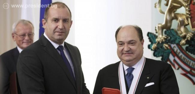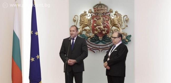 Държавният глава връчи орден „Стара планина“ първа степен на посланик Камило Дзуколи