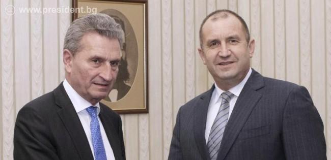 2017-10-27 16:56:00Като предстоящ председател на Съвета на Европейския съюз България осъзнава колко важно е справедливото и ефективно разпределение на европейските средства и формулирането на бъдещата Многогодишна финансова рамка. Ще работим заедно с Европейската комисия за намирането на най-добрия компромис, като отчитаме растящите нужди от повече средства в ключови сфери. Това заяви президентът Румен Радев, който се срещна днес на „Дондуков“ 2 с европейския комисар по въпросите на бюджета и човешките ресурси Гюнтер Йотингер.