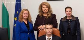 2025-10-22 17:10:00Гласът на младите хора достига до президентската институция и е важно как те виждат проблемите и предизвикателствата пред България и нейното бъдеще. Това заяви президентът Румен Радев на церемония в Гербовата зала на президентската институция, на която заедно с вицепрезидента Илияна Йотова връчиха сертификати на младежите, участващи в инициативата „Мениджър за един ден“. Матилда Матева, ученичка в ППМГ "Акад. проф. д-р Асен Златаров" – Ботевград, и Емилиян Георгиев от СУ "Козма Тричков" – Враца, днес бяха „президент“ и „вицепрезидент“ в рамките на инициативата.