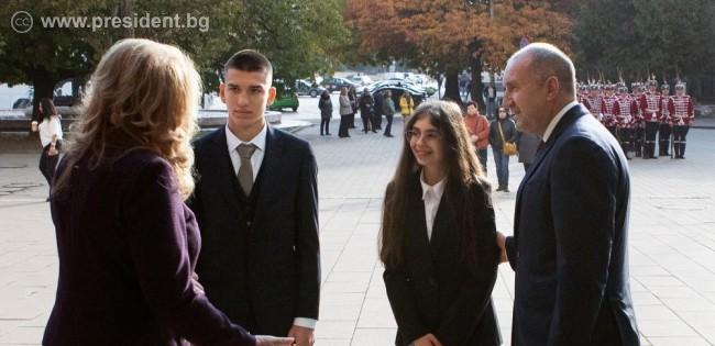 Президентът пожела на Матилда Матева и Емилиян Георгиев да отстояват своите принципи и идеали, да си поставят високи цели и да бъдат все така отворени към света. „Не забравяте своя здрав български корен, защото България има нужда от вашия талант, устрем и енергия“, допълни Румен Радев.