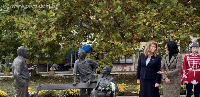 Вицепрезидентът откри в Левски скулптурна композиция на актьорите Георги Парцалев и Григор Вачков и писателя Дончо Цончев