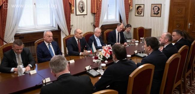 Президентът Радев приветства икономическото развитие на Грузия и отбеляза, че европейската интеграция на страната е предпоставка и за последващо всестранно задълбочаване на двустранното сътрудничество с България. Двата народа споделят и многовековни културни и духовни връзки, бе отбелязано още по време на срещата.