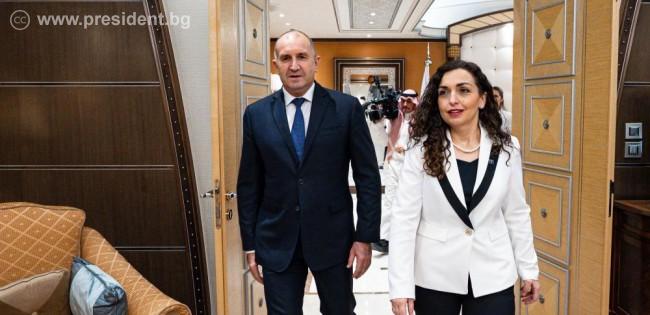 2025-10-29 09:04:00The Republic of Kosovo's unwavering commitment to building stable institutions and deepening regional cooperation is in the interest of both the countries of Southeast Europe and the European Union, and deserves recognition and support. This was stated by President Rumen Radev at a meeting in Riyadh with the President of the Republic of Kosovo, Vjosa Osmani. The two held talks during the ninth edition of the Future Investment Initiative forum, hosted by the Kingdom of Saudi Arabia.