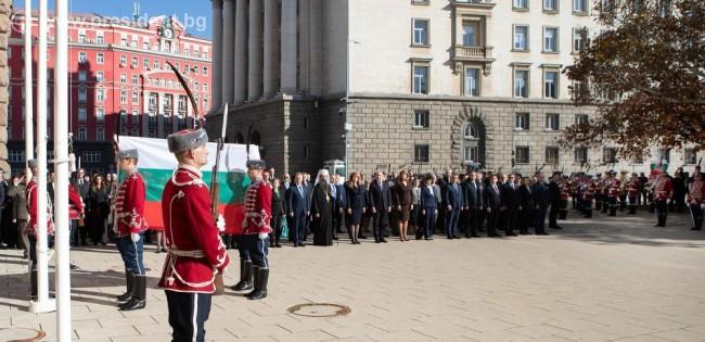 По повод празника по-рано през деня се проведе церемония по издигане на националния флаг на Република България, в рамките на която държавният глава прие строя на Националната гвардейска част.