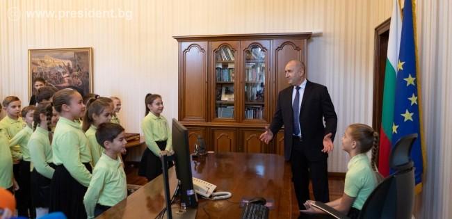 Опирайки се на традициите и родолюбието, ние можем днес достойно да се изправим с лице към бъдещето и подобно на нашите възрожденци да търсим заедно мястото на България в модерния свят. Това заяви държавният глава Румен Радев на церемония в Гербовата зала по повод Деня на народните будители. По случай празника в сградата на президентската институция се събраха представители на държавни, културни и научни институции, университети, училища и творчески съюзи. В рамките на церемонията президентът отличи ученици и студенти с високи постижения в образованието, науката, изкуствата и обществената дейност. На събитието присъстваха вицепрезидентът Илияна Йотова, Негово Светейшество Даниил Патриарх Български, съпругата на президента Десислава Радева.