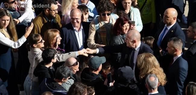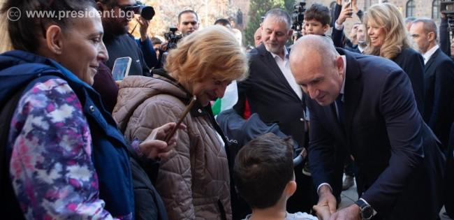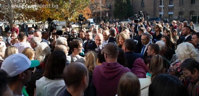 Пред президентската институция Румен Радев и Илияна Йотова поздравиха гражданите, дошли да посетят сградата в рамките на Деня на отворените врати.