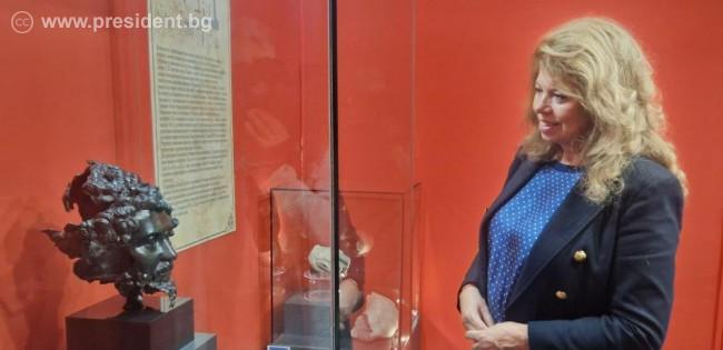 Илияна Йотова подари на Общинския исторически музей в Средец двата сборника, посветени на проведените от президентската институция Международни форуми за кирилицата.